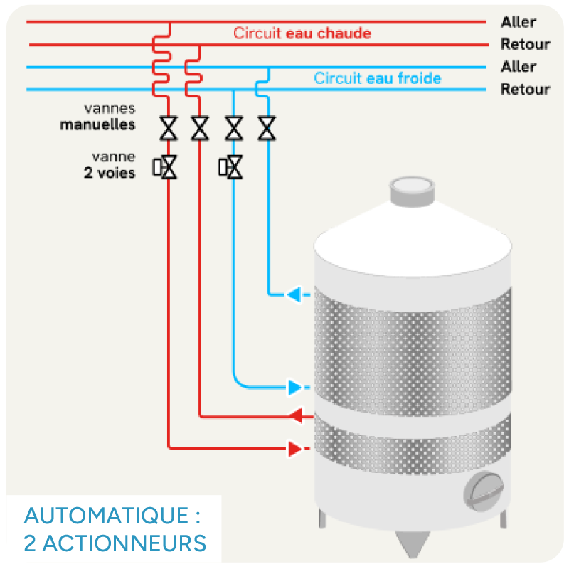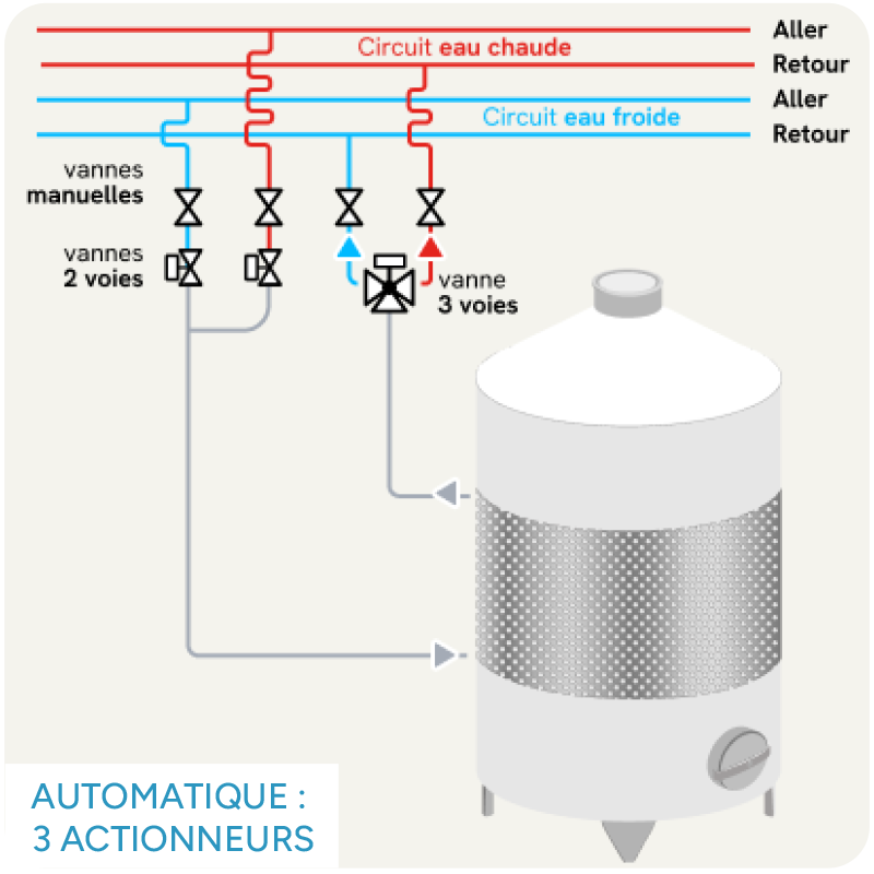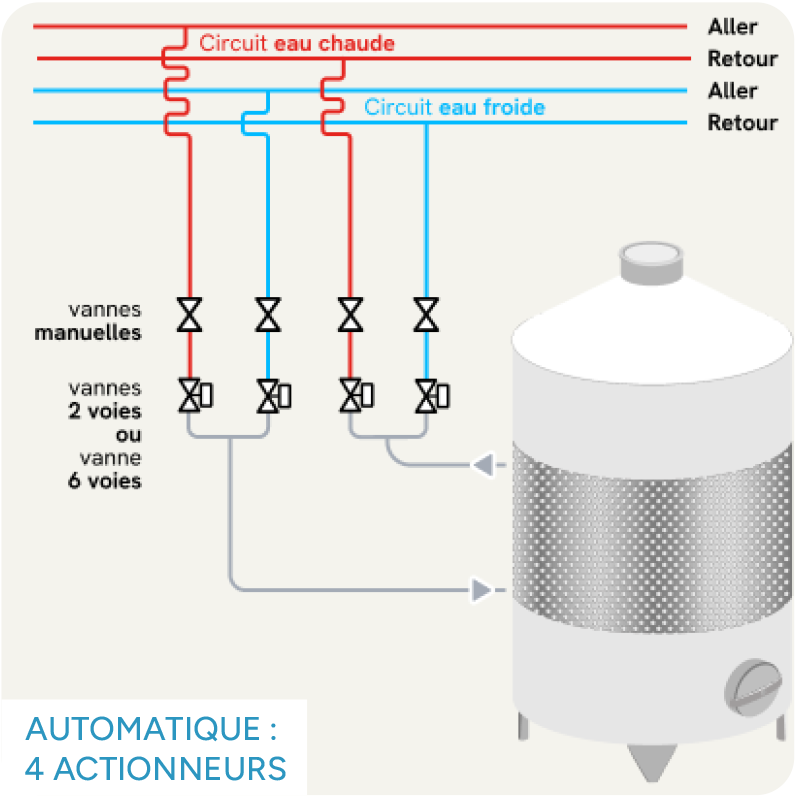 Possibilité d’installer les coffrets au plus près des cuves par îlot pour limiter le câblage
